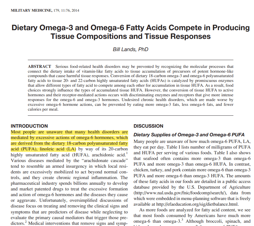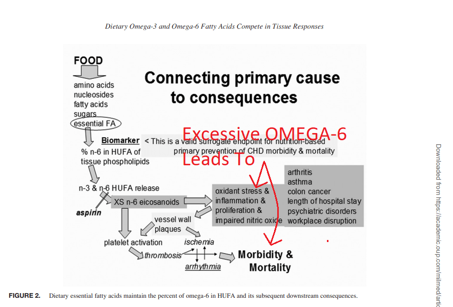 However, when we consume too much of specific fatty acids (Omega-6 Linoleic Acid), we get hyper-oxidation (inflammation) of the cells in ALL of our tissues. This, of course, leads to many different disease outcomes OVER TIME.