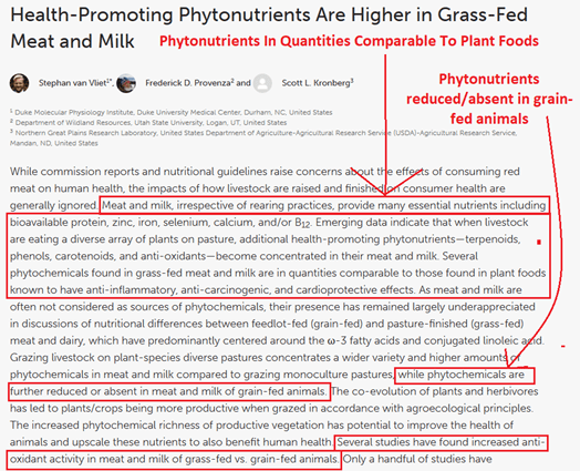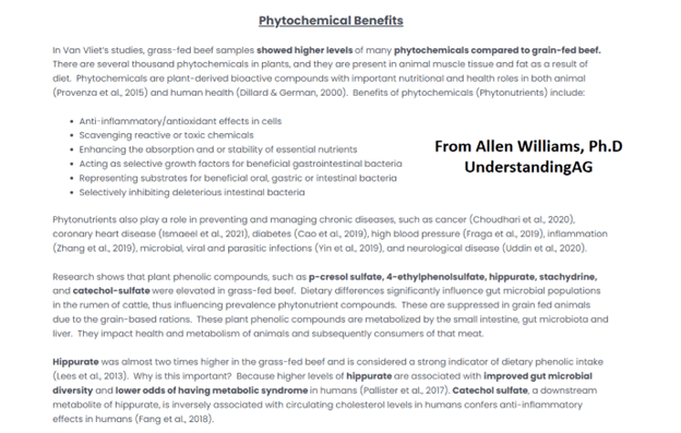 - Many people believe that fruits and vegetables are the only way to get phytonutrients in the diet. However, grass-fed beef contains a significant amount of these compounds, and a much higher amount than grain-fed beef.