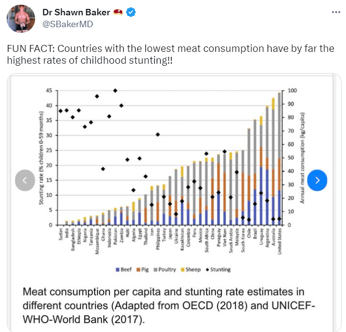 Higher meat consumption is also associated with longer life expectancy.