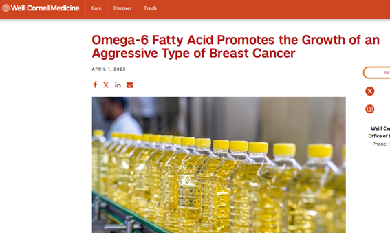 Linoleic acid, a specific fat found abundantly in vegetable and seed oils, has been shown to drive the growth of breast cancer.