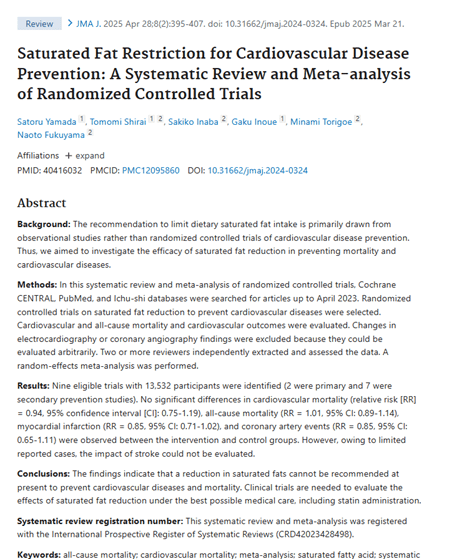 This systematic review of randomized controlled trials (the GOLD STANDARD of scientific evidence) concludes that “reducing saturated fats cannot be recommended at present to prevent cardiovascular diseases and mortality”.