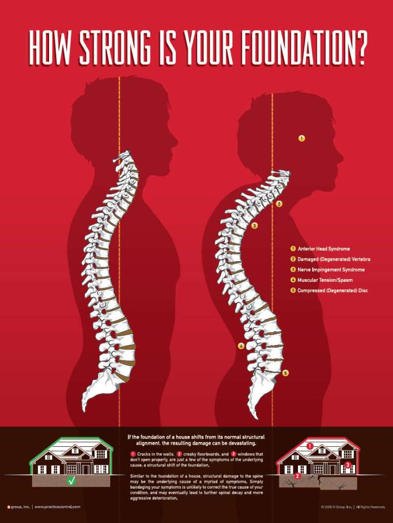 Think of your spine as the foundation of your body, similar to the foundation of a building. If the foundation of the building shifted by just a couple of inches, would it be reasonable to expect the walls to crack, doors to creak, and windows to not open smoothly? Without correcting the foundational shifts, the problems would have to be corrected over and over again.